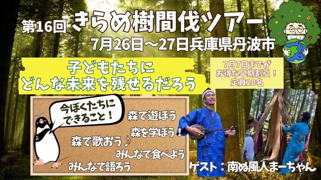 子どもから、おじいちゃんおばあちゃんみんなができる山のお手入れ 【きらめ樹】をして森に光を届けちゃいましょう~!! 今年最初の自然体験ツアーは、兵庫県丹波市での間伐です♪ ...